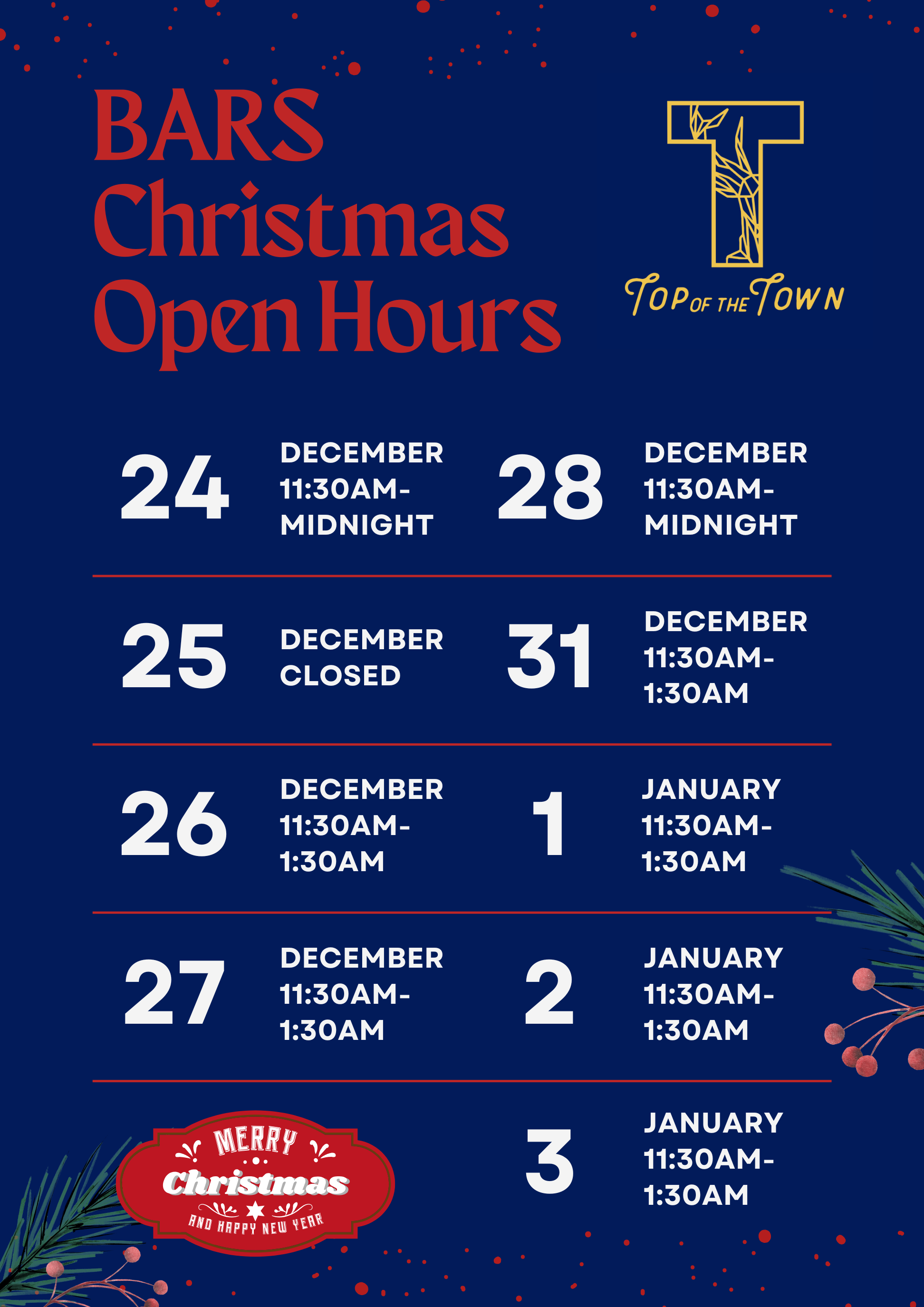 If you need to speak to someone, give us a call or send us an email. We look forward to welcoming your party to Top of the Town!